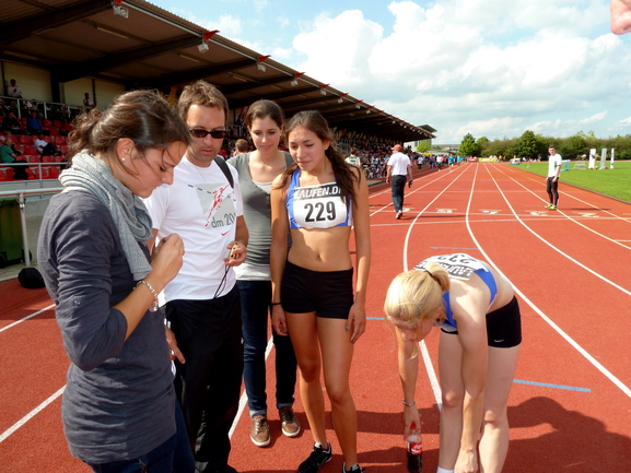 Ellise und Silke mit Trainer Jochen Dittombée und mitgereisten Fans