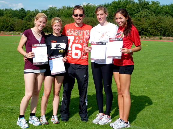 Das Quartett mit Trainer Jochen und Urkunden