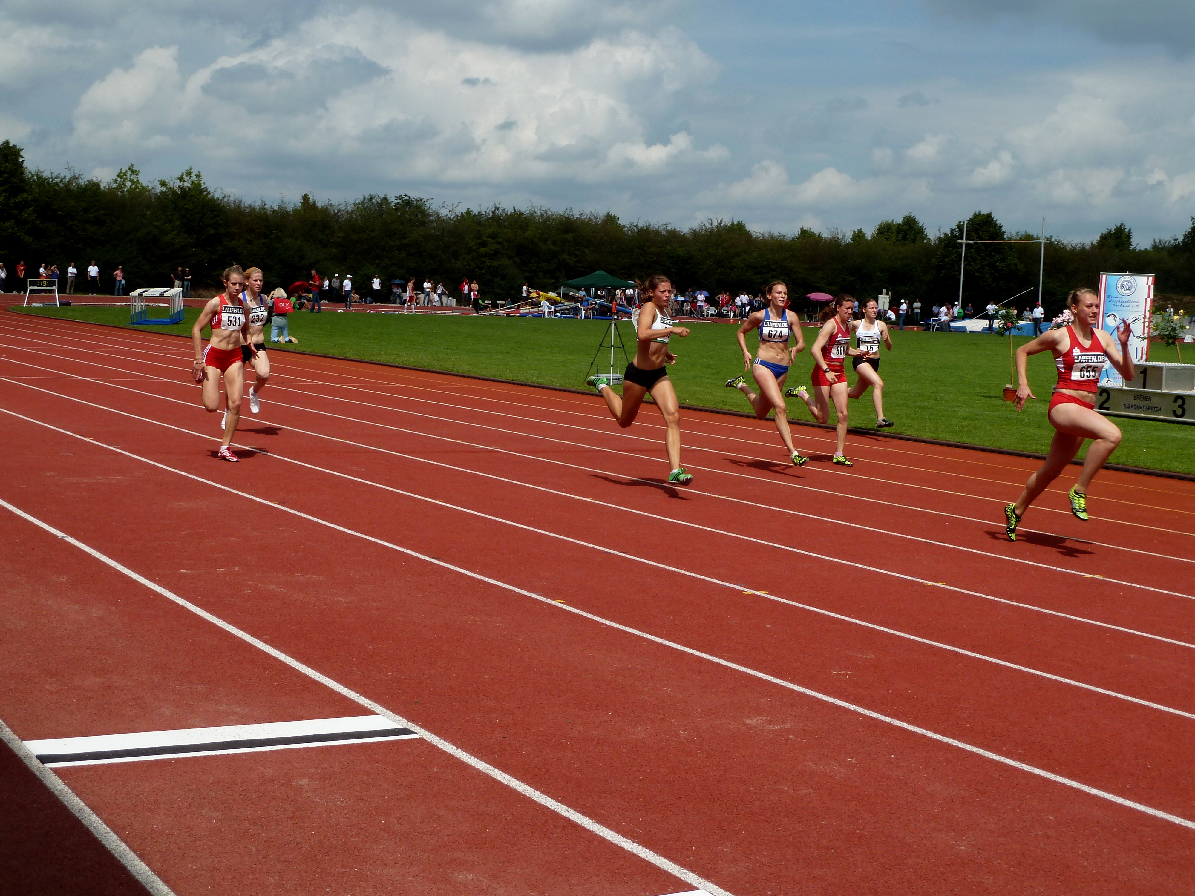 Silke auf der Zielgeraden des 200m-Finales (Bahn 6), das sie als 6. mit erneutem Kreisrekord - 24,73 sek - beendete