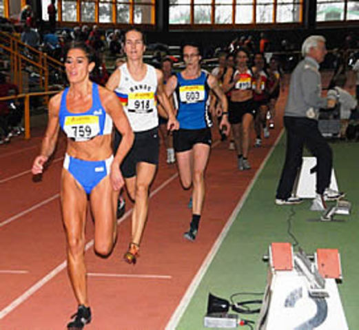 800m der Frauen: Gabi Baltruschat (W45) macht das Tempo