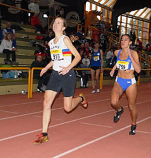 Windschatten von Gabi Baltruschat Im Ziel liegt die W40 Siegerin Irene Mancho schließlich hauchdünn vor der W45 Siegerin Gabi Baltruschat
