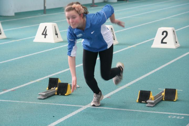 Kreisschülersportfest am 24.2.13 - Charlotte Hünewaldt bei den Startvorbereitungen zum 60m Lauf der W 12