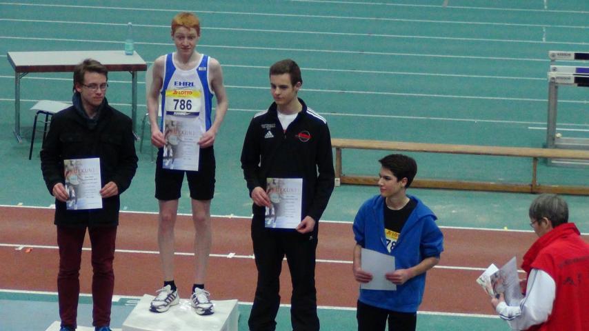 Kai Strauch wird für seinen Sieg bei der m U 18 über 800m geehrt. Vierter wurde Luis Cuadrado