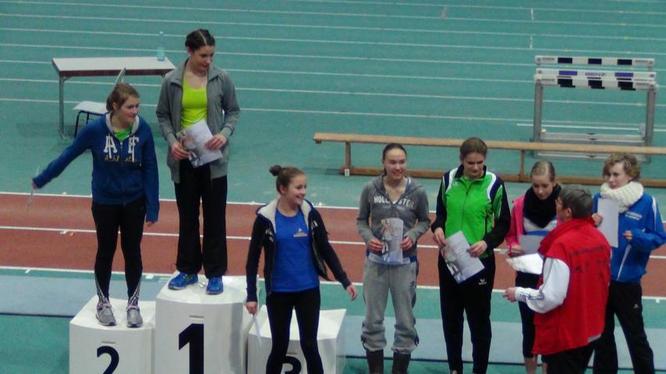 Carolin Roskothen (4. v.lks) bei der Siegerehrung Kugelstoß W 15. IN der MTK-Wertung wurde sie 2. der Kreismeisterschaften