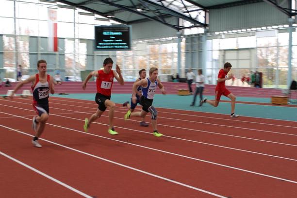 Milan Zengeler (Mitte) liegt in seinem 60m VL in Führung