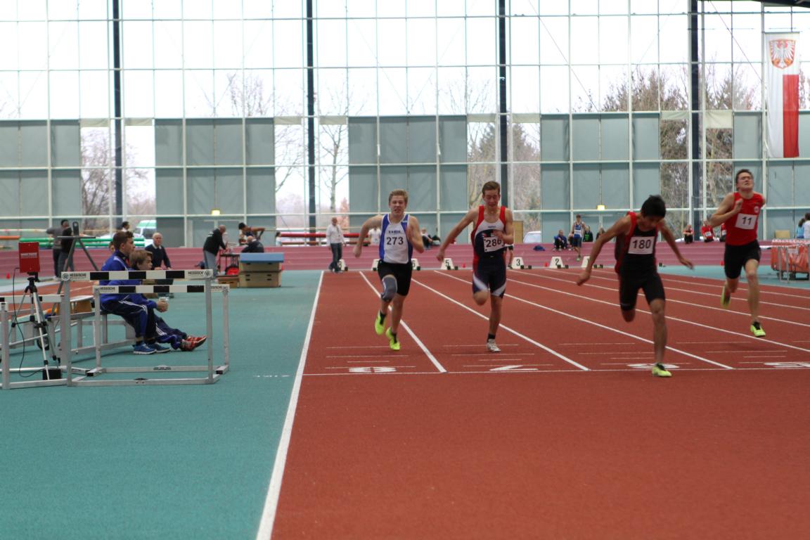 Milan Zengeler (ganz links) im Ziel des 60m Endlaufs