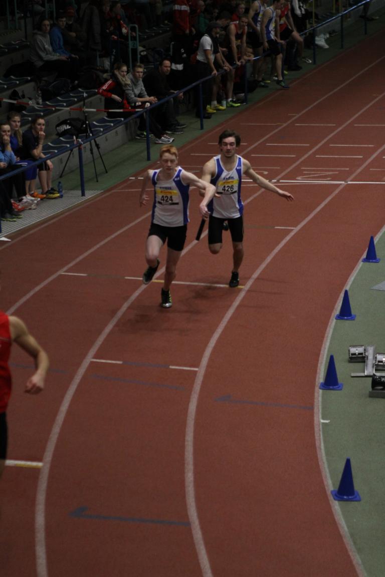 4x200m Staffel (M) - 1. Wechsel - Startläufer Sascha Turek übergibt an Kai Strauch