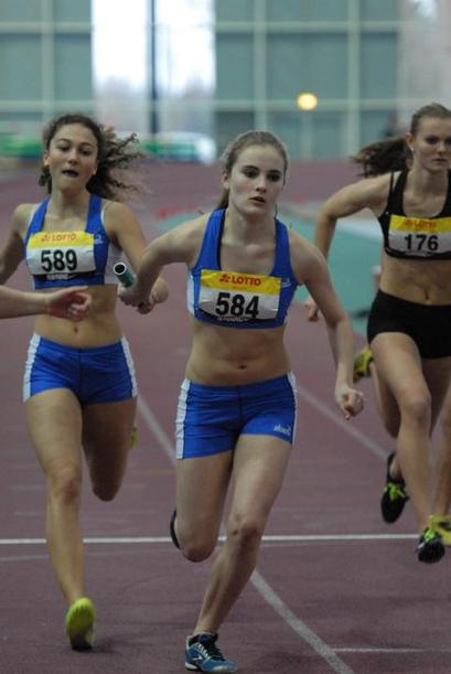 4x200m Staffel w U 20 - 1. Wechsel Sarah Baun übernimmt von Startläuferin Naomi Heidrich