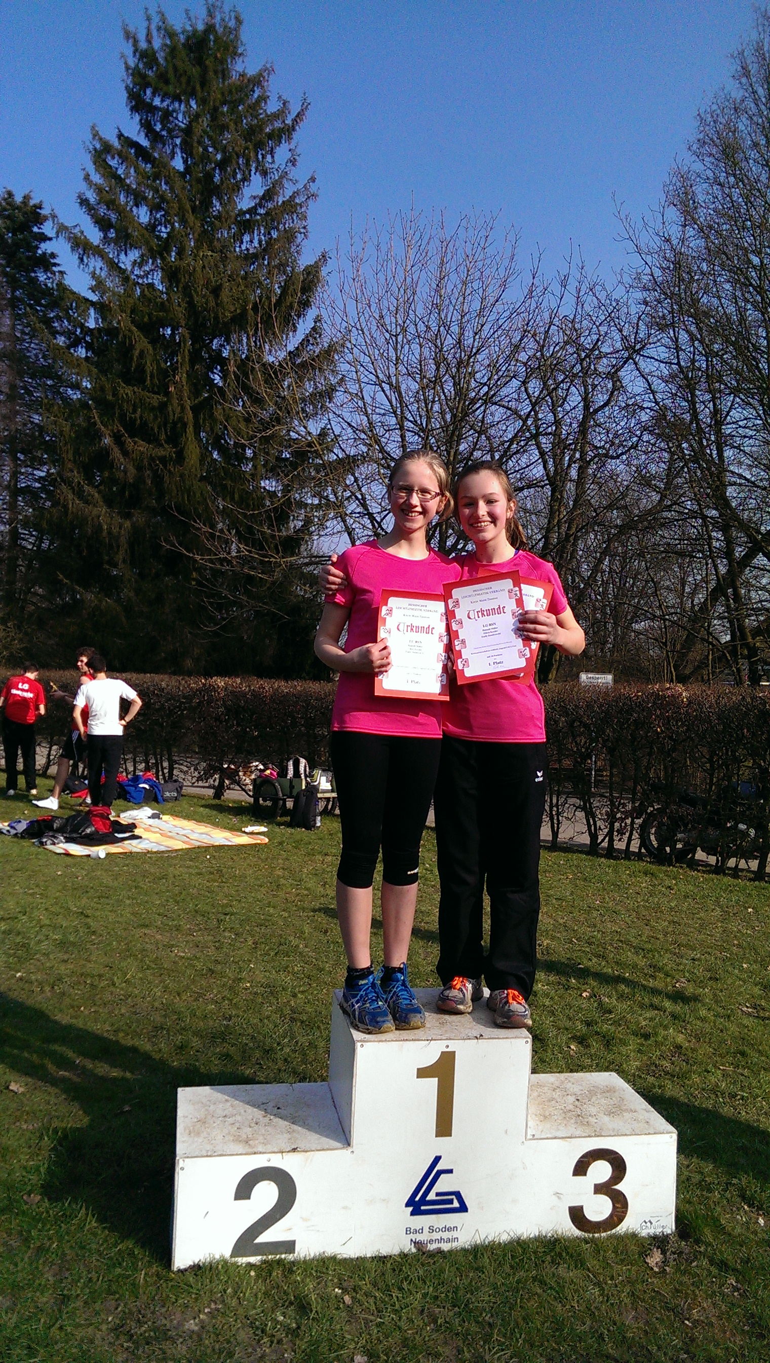Eileen Kessler und Hannah Müller wurden Kreis-Mannschaftsmeister der W U 16 über 1,9 km - zusammen mit Emily Dombrowski, die auf dem Foto fehlt