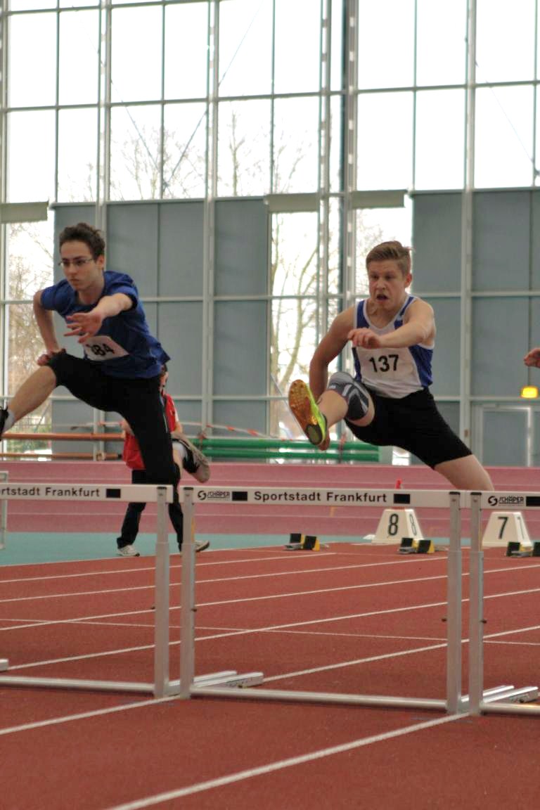 Milan Zengeler (re) beim 60m Hürdenlauf der M 15 - 2. Platz im MTK