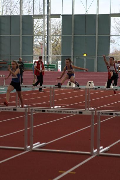 Hannah Müller (U 16) beim 60m Hürdenlauf (Mitte)