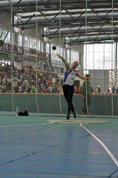Vielstarter Jörn Kämpken beim Kugelstoßen der Männer