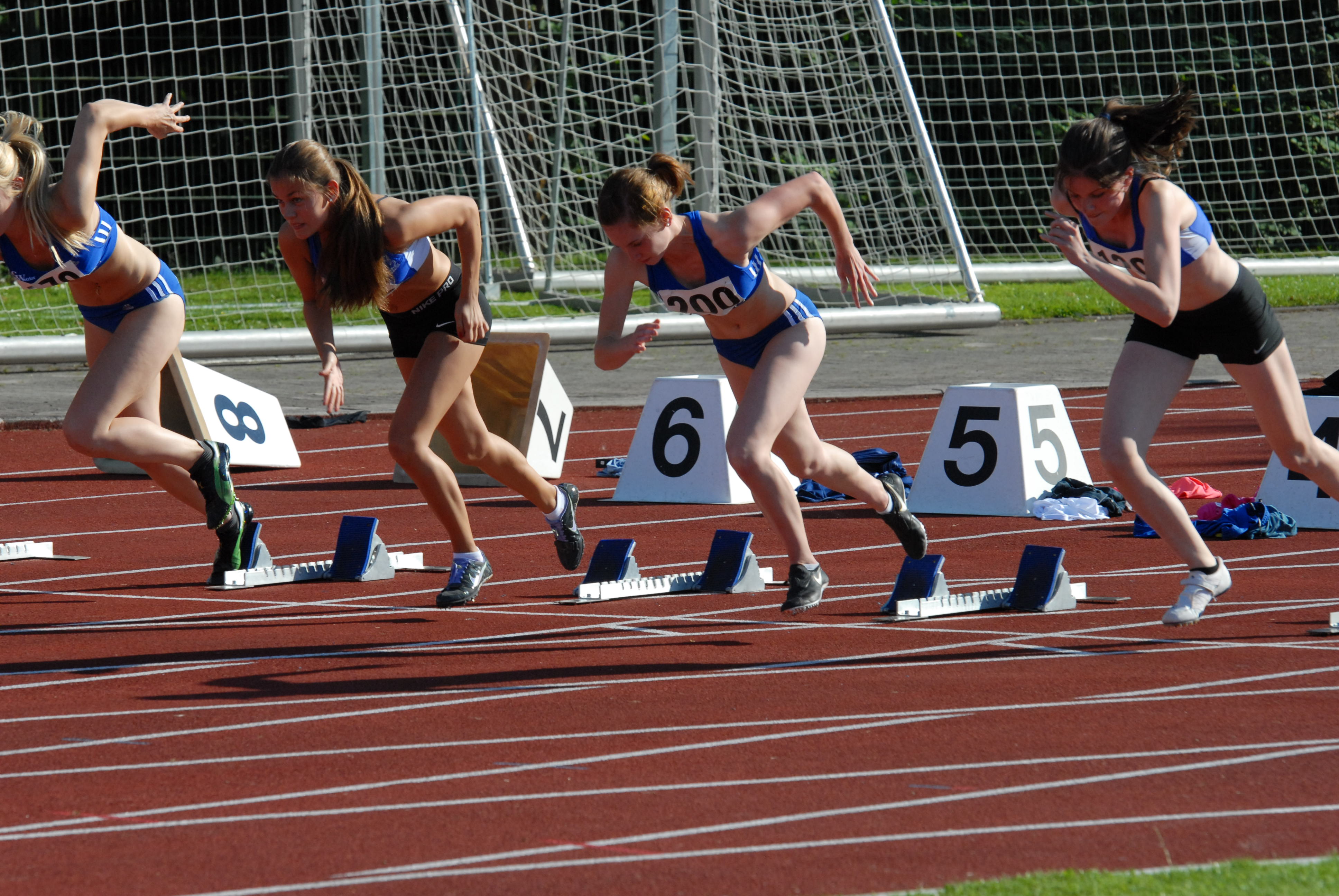 Vivien Wagner (ganz rechts) und Viktoria Hofherr (2. v. lks.) beim 100m-Start